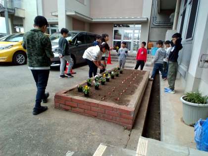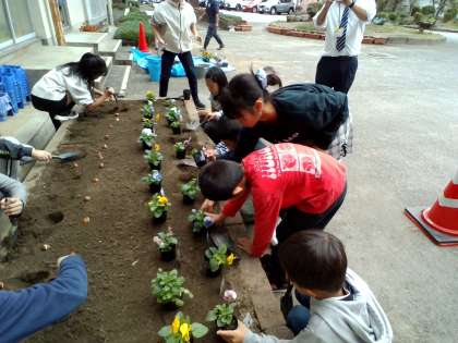 環境委員が活動をしていると、2年生も手伝ってくれました。