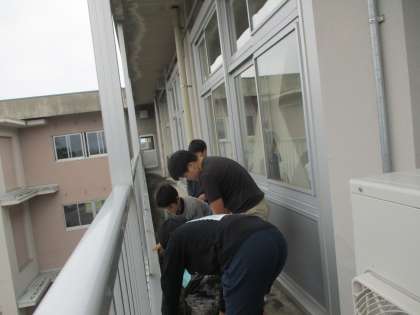 ベランダに葉っぱやこけがたまっているから掃除しよう・・・