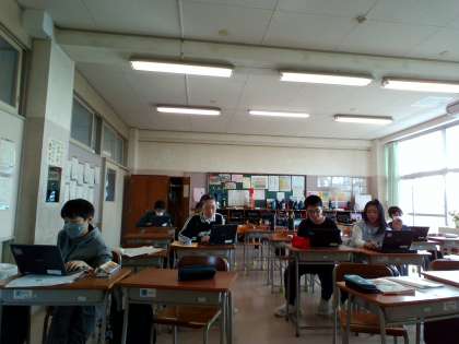 端末で調べ学習をしたり、分かったことをまとめたりしている子供もいます。