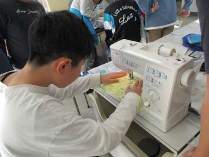 トートバッグづくりです。ミシンで縫い始めました。