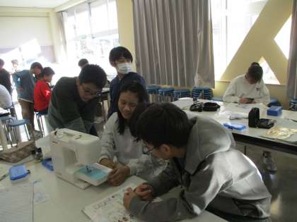 トートバッグづくりです。ミシンで縫い始めました。