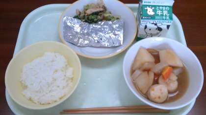 11月11日 今日のこんだて 公開日 2024/11/12 更新日 2024/11/12 給食室 ごはん 牛乳 さばの銀紙焼き しめじのごま和え かんとうだき 検食 異常なし 銀紙焼きの味噌をご飯にのせて食べるとおいしいです。