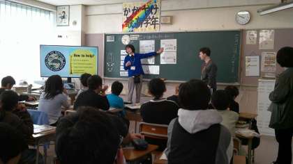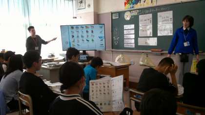 「Let’s save the ・・・」守りたい動物について、その理由もつけて会話する学習を始めるところです。