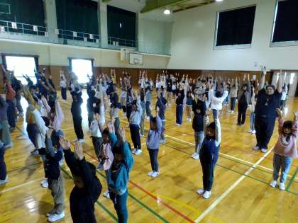 その3、両手を耳につけてまっすぐ上にあげて・・・