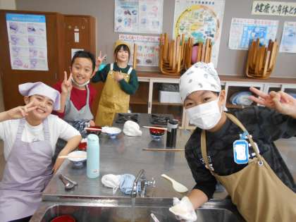 出汁入りの味噌汁と出汁を入れない味噌汁を作って、飲み比べました。「だしがあるだけでこんなに違うんだ」「だし入りの方が美味しい」など、出汁の偉大さに感動している様子でした。
