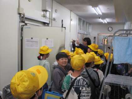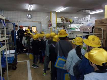 3年生 スーパーマーケット見学その1 公開日 2024/11/14 更新日 2024/11/14 3年生 晴天の中、3年生はスーパーマーケットの見学に出かけました。行きは30分ほど歩いて行きました。到着すると早速、普段なかなか見ることの出来ないバックヤードを見学しながら説明を聞きました。