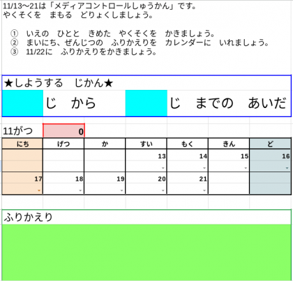 この期間は、全校、家庭学習の振り返りとともに、自分で決めたメディアコントロールのめあての振り返りもしています。