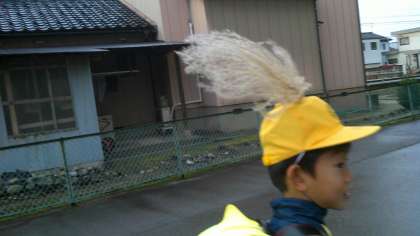 毎朝、登校途中の道にあるすすきを帽子に飾ってくるAさん。秋を楽しんでいます。友達から「サンバ(の羽根かざり)みたい!」「かっこいい!」と声をかけられていました。