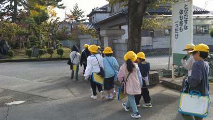 先にたんけんに出かけた子どもたちが帰ってきたので、入れ替わって次は、白岩川方面をたんけんに行く子どもたちです。どんなすてきを見つけてくるでしょうか。