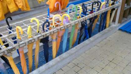 2年生はいつも、全員、傘のバンドをしっかり巻いて入れています。細かなところにも気を配れる、しかも全員ができているところがすばらしいですね。