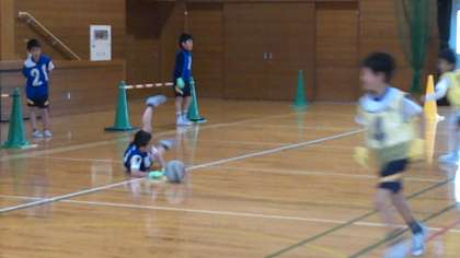 先週までは、「ボールけりゲーム」をがんばっていましたね。ボールを蹴る経験の少ない子どもたちも、ゲームを通してどんどん上手になり、思いっきりボールを蹴ることができるようになりました。ゲームの間、止まることなく走り続けているので、体力もついてきたようですね。