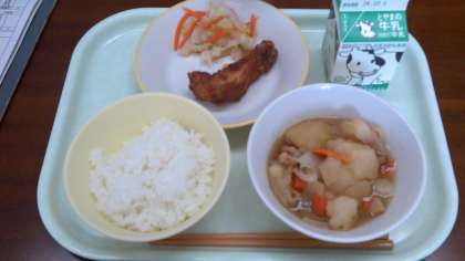 竜田揚げの魚には下味が付き、からっと揚がっていて、魚が苦手な子供にも食べやすく調理してありました。