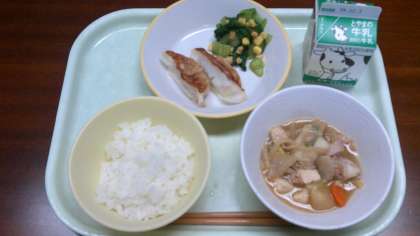 ごはん  牛乳  焼きぎょうざ
