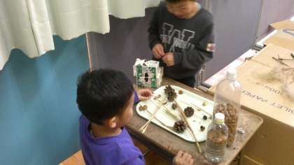 1年生 生活科 公開日 2024/11/28 更新日 2024/11/28 1年生 「あきであそぼう ○○ランド」の学習では、自分たちで作った遊び場や木の実で作ったお店屋さんに友達を招待しようと取り組んでいました。