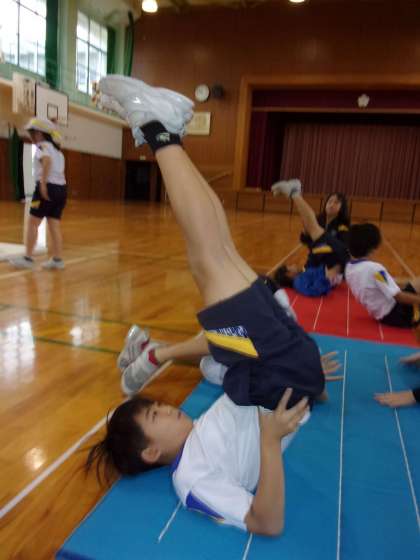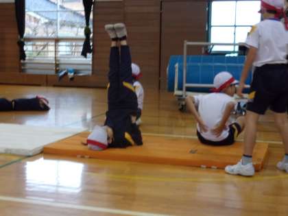 3年生 体育「マット運動」 公開日 2024/11/29 更新日 2024/11/29 3年生 前転や後転が少しずつスムーズにできうようになってきました。今日は、腰倒立にチャレンジです。友達に支えてもらたっり自分で手の位置を確認したりして、まっすぐに立てるようにがんばっています。