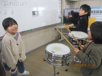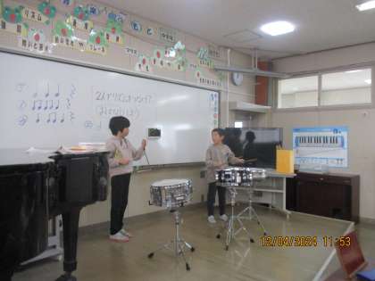 2人のペアで、リズムを組み合わせて楽器を演奏しました。