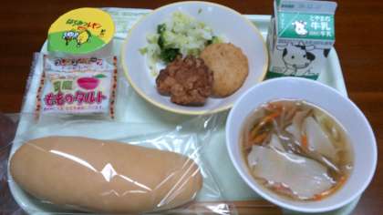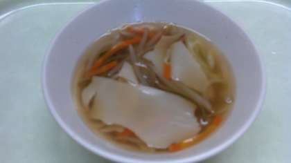 コッペパン 牛乳 そえ野菜 ワンタンスープ
