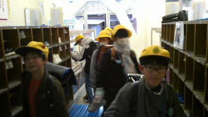 玄関を入るときに「おはよう!」、友達の顔を見て「おはよう!」、いつも玄関で声をかけている運営委員さんに「おはよう!」玄関の中でもあいさつの花がたくさん咲いていました。