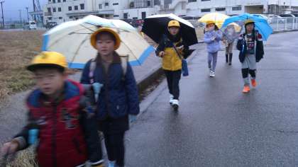 登校班の班長さんは、下級生の歩くスピードを考えたり、下級生を助けたりしながら歩いてくれていました。