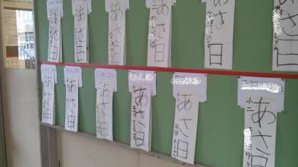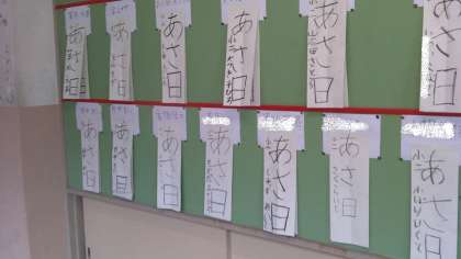2年生は硬筆で「あさ日」と書きます。