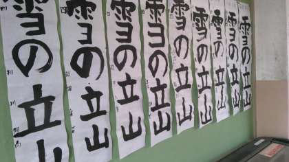 4年生は毛筆で「雪の立山」と書きます。まだまだこれから練習します。