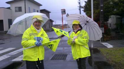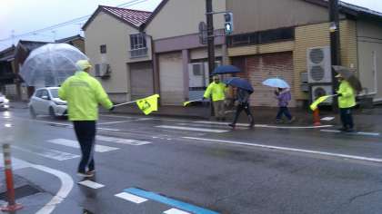 寒い中、子どもたちが通るずいぶん前から準備をして待ってくださっています。