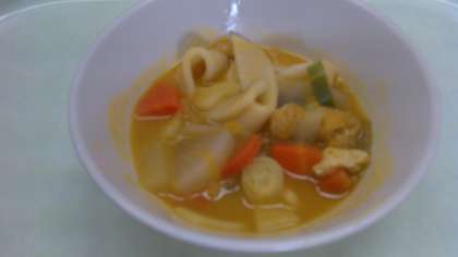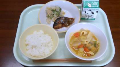 初めて「ほうとう鍋」という献立が出されました。ほうとう初めて食べる子どもたちもたくさんいました。かぼちゃや大根、にんじん、ネギなど入った味噌味の鍋でした。かぼちゃの甘みが出ていてとても美味しかったです。