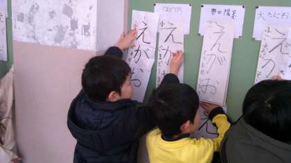 前回書いた文字をよく見て、今日の目当てをもった人から練習を始めていました。みんな、真剣です。