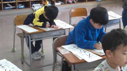 前回書いた文字をよく見て、今日の目当てをもった人から練習を始めていました。みんな、真剣です。
