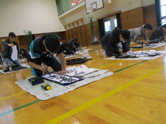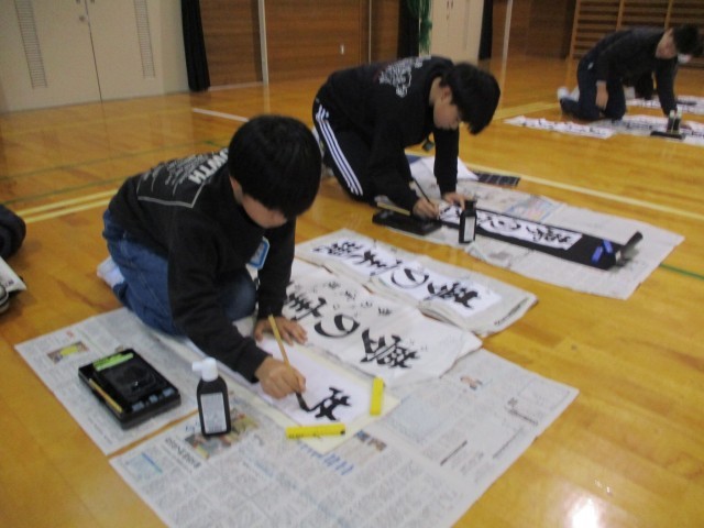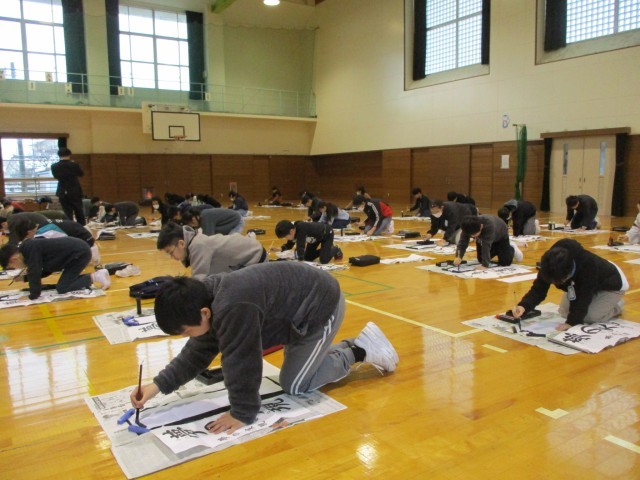 小学校生活最後の書初大会。心地よい緊張感に包まれ、自分の書に真剣に向き合いました。