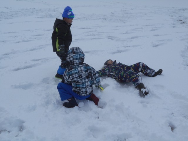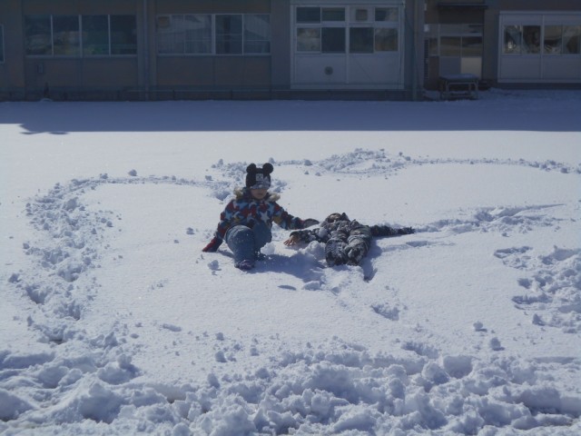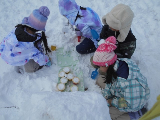 グラウンドで生活科の学習に取り組みました。雪玉を作ったり雪だるまを作ったりして冬を楽しみました。