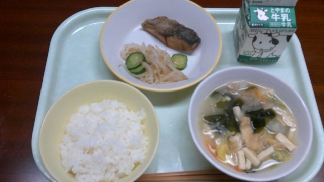 ごはん  牛乳  あじのかば焼き  もやしのおひたし  高野豆腐のみそ汁