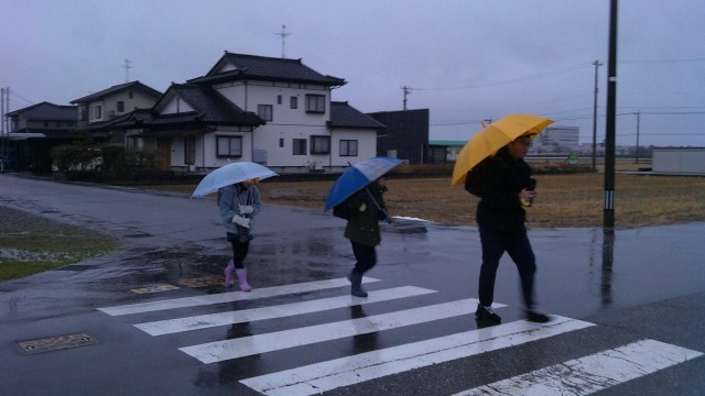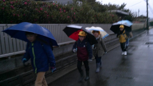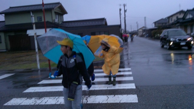 雨でも傘の中から「おはようございます!」のいい声が聞こえています。