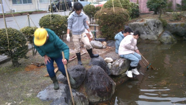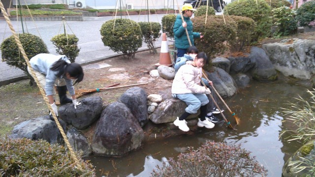 今日の放課後は、池の落ち葉を掃除したり、池の中に沈む大きな石を取り除いたりと楽しんで活動していました。