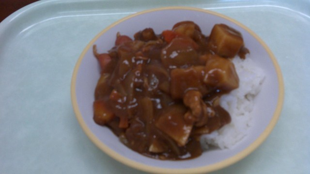 子どもたちに大人気のハヤシライスです。ハートのにんじんが入ってたらラッキーです。