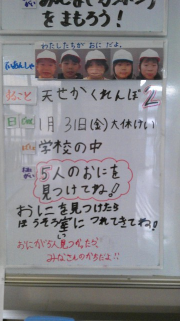 今度は、5人のおにをみんなで見つけ出すそうです。前回「天瀬かくれんぼ」を提案してくれた5人が、新しいかくれんぼを企画してくれました。今からたのしみですね。5人全員見つけるぞ!