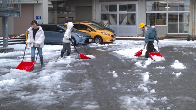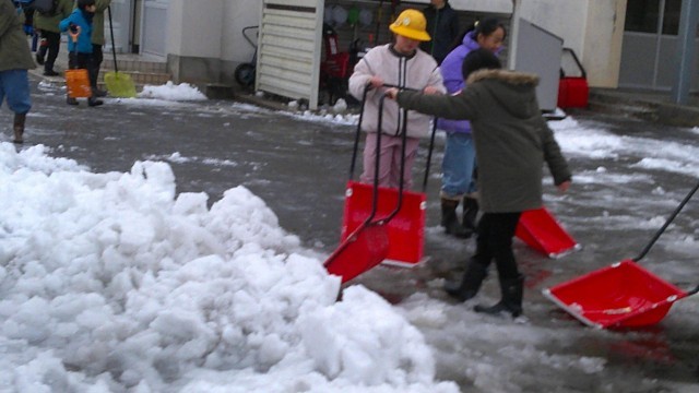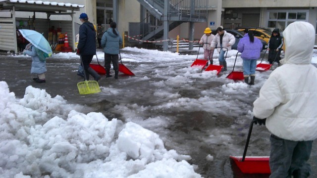 登校後、何人もの人が雪かきをしてくれました。児童玄関まわりがすっきりとして安全に行き来できるようになりました。