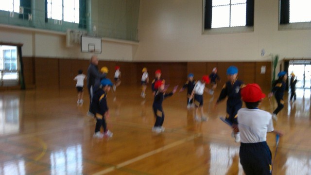 2年生 体育 公開日 2025/02/03 更新日 2025/02/03 2年生 今日から新しい学習です。「リズムに合わせて動こう」 音楽のリズムに乗って短なわとび、長なわとびをしたあと、先生の真似をして音楽に合わせて動きました。リズムを感じて動くのは気持ちいいですね。