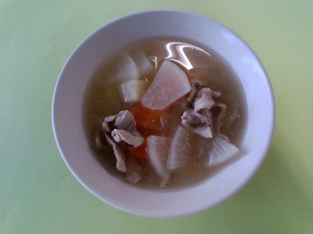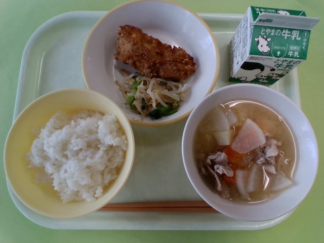 白身魚のホキはなたね油でサクッと揚げられ、豚汁も身体が温まりました。