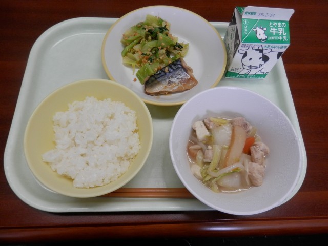 ごはん 牛乳 さばのみそ煮 いり大豆和え ちゃんこ鍋