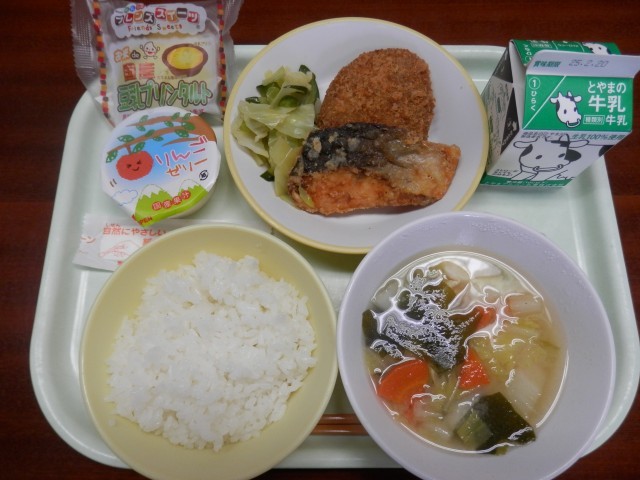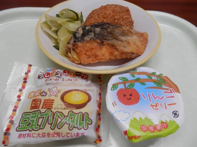2月13日 今日のこんだて(選択こんだて) 公開日 2025/02/13 更新日 2025/02/13 給食室 ごはん 牛乳 具だくさん汁 和風サラダ肉じゃがコロッケ or さけの竜田揚げ りんごゼリー or プリンタルト検食 異常なし 今日は選択献立で、子供たちは楽しみにしていました。どちらもおいしく、選ぶのは難しいですね。