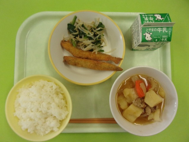 ごはん 牛乳 ししゃもフライ しょうがひたし 肉じゃが