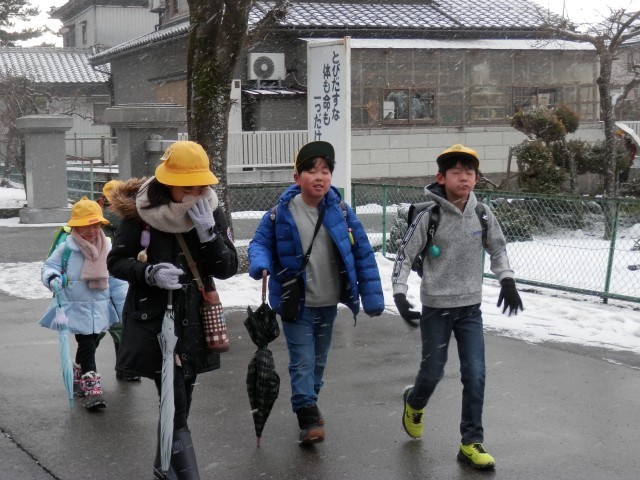 はじめは晴れていましたが、8時を過ぎると雪と風が強くなってきました。上級生は、後ろを歩く下級生を気遣いながら歩いてくれています。