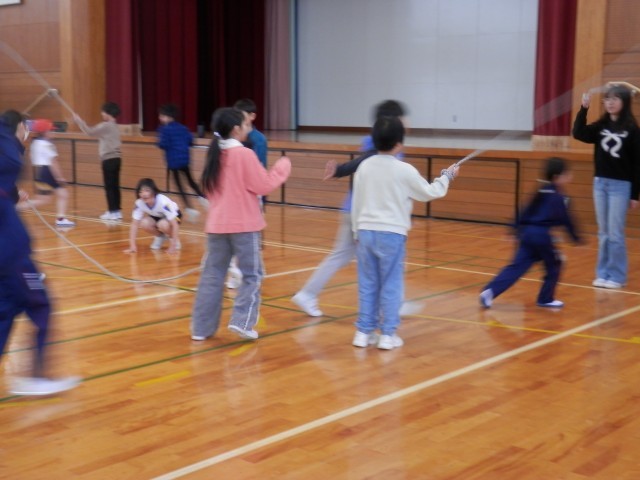 ファミリーで長縄練習をしています。来週の記録会に向けて、5年生が中心となって練習を進めていました。