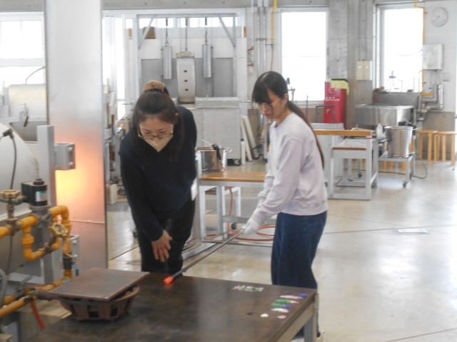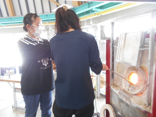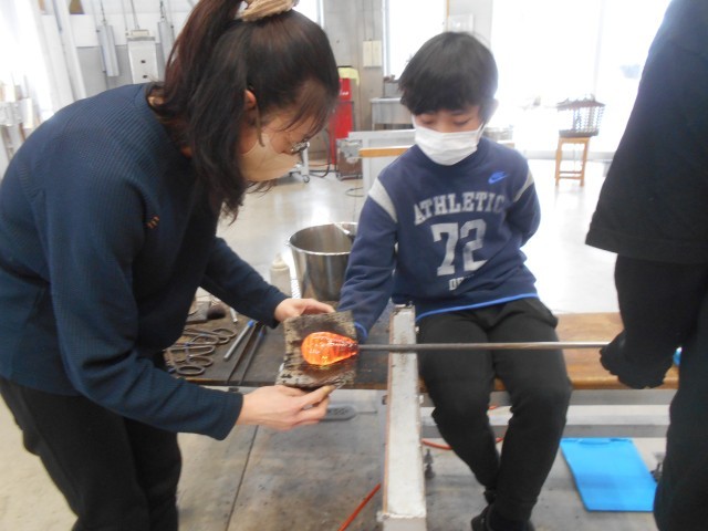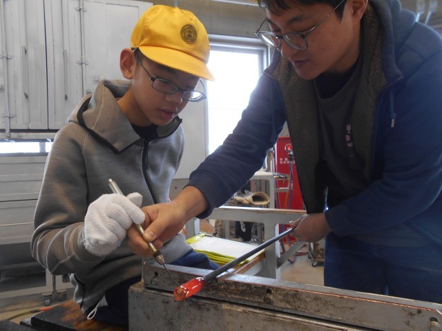 形や色を選び、ガラス作家さんのサポートを受けながら、ペーパーウエイトをつくります。