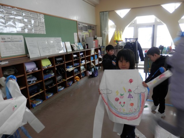 1年生 生活科 公開日 2025/02/21 更新日 2025/02/21 1年生 体育館でたこあげをしました。走ると結構高く上がりました。次は、風にある日にグラウンドで揚げるそうです。風を受けてもっともっと高く揚がるにちがいないと子どもたちは楽しみにしていました。 +3