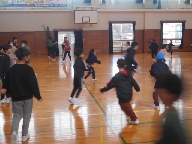 今日は、大休憩にいろいろなイベントがありました。図書室で読み聞かせを聞いたり体育館でけいどろをしたりしていました。