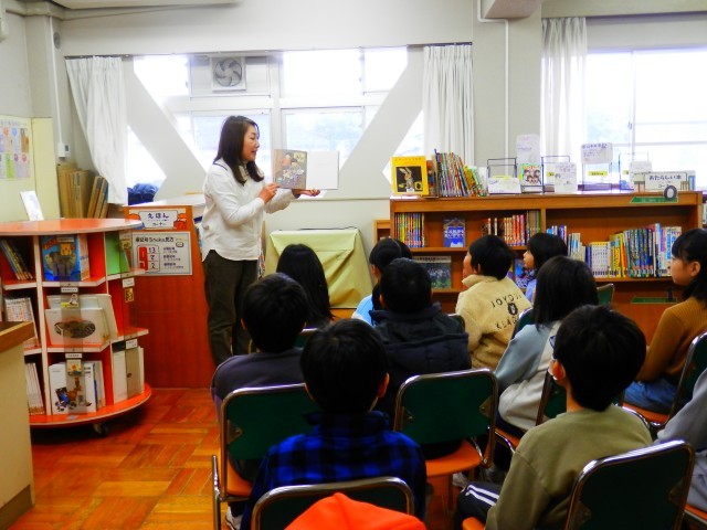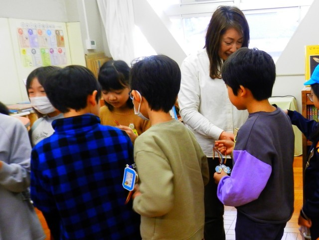 「読み聞かせ」では、静かに聞き入った後、お楽しみのプレゼントをもらってうれしそうでした。