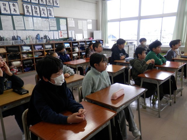 朝、教頭先生から、「東日本大震災から14年」ということについて放送でお話がありました。4年生の教室では、さらに担任の先生が詳しく話した後、今の自分たちにできることについて考えていました。