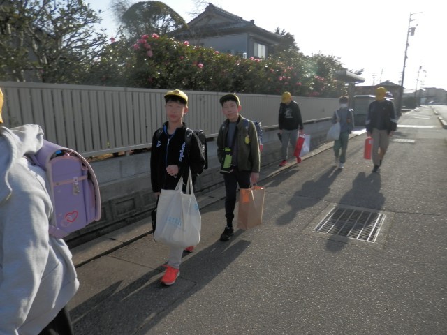 6年生は、卒業証書授与の写真撮影のため、卒業式当日に着る洋服を持ってきました。大きな荷物になりましたが、みんな大切に持っていますね。